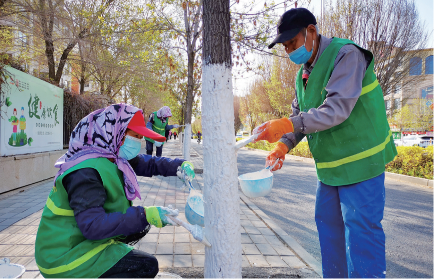 近日,记者在昌吉市南公园西路看到,几位园林工人正拿着刷子蘸了容器里的白色液体后,仔细刷白树木。“我们要着重对树皮缝隙、洞孔和树杈等处反复涂刷,而且每株的粉刷高度都要控制在1米左右,树木涂白剂含有生石灰、硫黄等物质,不仅能够驱虫、杀虫,还能帮助树木抵御病害,涂白后的树木也给城市增添了靓丽的视觉效果。”园林工人张师傅告诉记者。