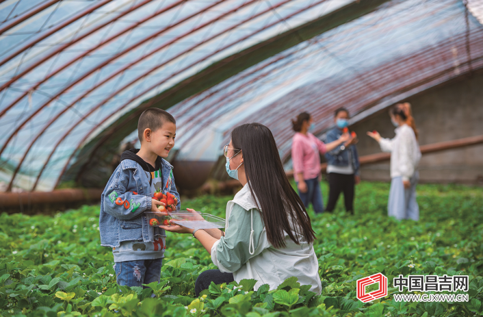 吉木萨尔县泉子街镇蝴蝶园采摘园游客采摘草莓 (图)