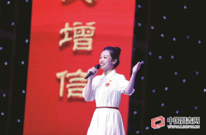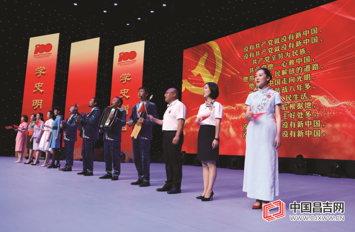 6月21日,“永远跟党走”福建党史故事巡回宣讲团走进昌吉专场报告会举行。报告会最后,福建省党史故事巡回宣讲团成员、昌吉市达尔罕文艺宣讲队成员与全体观众齐唱《没有共产党就没有新中国》。