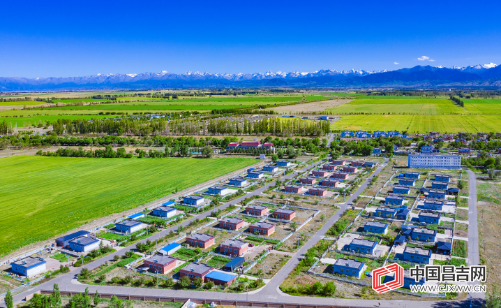 7月6日拍摄的奇台县吉布库镇涨坝村新貌。近年来,吉布库镇涨坝村着力打造“天蓝、地绿、水净,安居、乐业、增收”的休闲旅游示范村,今年还将建成房车营地和2000平方米的智能温室,着力打造“游江布拉克 吃涨坝烧烤 住涨坝民宿”的旅游品牌,力争今年人均纯收入突破3万元。