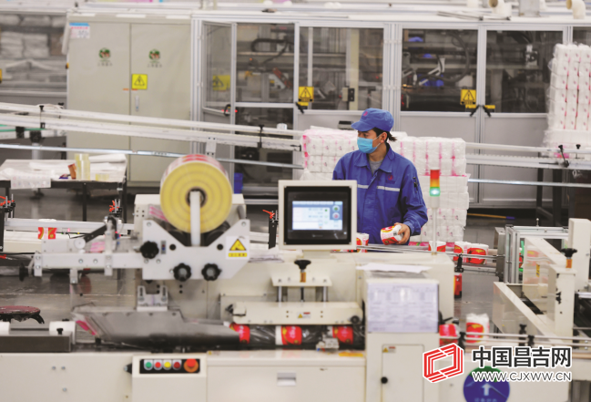 昌吉国家高新技术产业开发区恒安(昌吉)纸业有限公司生产车间内,工人在生产线上忙碌着(摄于2020年8月29日)。 本报记者 何龙 摄