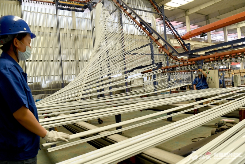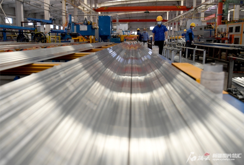 6月16日,位于昌吉国家高新技术产业开发区的新疆新铝铝业有限公司员工在生产铝型材。昌吉国家高新技术产业开发区现有新型材料生产企业100家,2020年新型材料企业实现产值29.96亿元,同比增长10.11%,占开发区全部企业总产值45.86%。石榴云/新疆日报记者韩亮摄