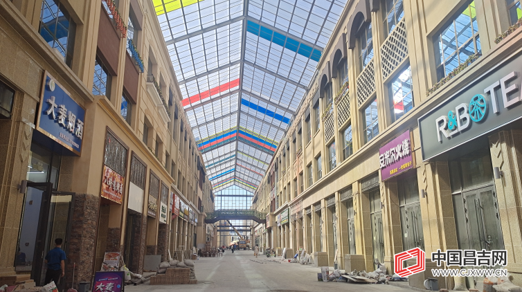文旅小镇内设产品展示区、加工体验区、直播带货区、品尝销售区、品牌培育区、文化宣传区等多个功能区域,经营业态十分丰富。目前,展厅内各县市特色农副产品已完成布展,10家电商直播间也已搭建完毕,一楼各类名小吃、加盟店商户全部入驻,共计84家。小镇整体建设已接近尾声,工人正在加紧接运、安装、焊接打馕所需机械设备。