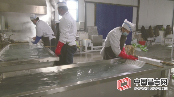 在兰州湾镇金土豆产供销专业合作社粉条加工车间,员工们正在加工粉条。马宏霞 摄