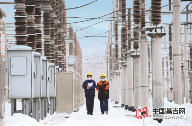1月28日,国网昌吉供电公司变电运维中心主值班员潘晓佳(右)与同事帕丽在国网昌吉供电公司220kV长宁变电站内开展巡视工作。 记者 高云哲 摄