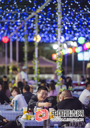 4月30日,市民在昌吉市里约夜市吃饭。记者 何龙 摄