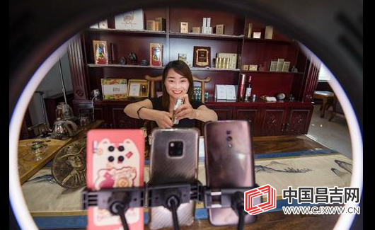 4月19日,昌吉市二六工镇鸸鹋养殖基地,工作人员正在直播推广鸸鹋油制成的化妆品。 (本报资料照片)