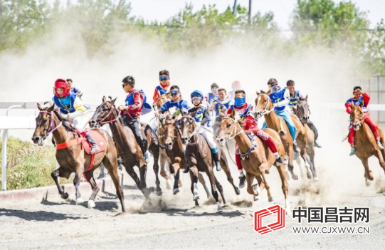 中国昌吉网(记者 何龙 文/图)7月23日,木垒县哈扎纳特国际赛马场观众台上人山人海,赛道上几匹彪悍的骏马正蓄势待发,一声令下,骏马风驰电掣般冲入赛道,沙土飞溅。
