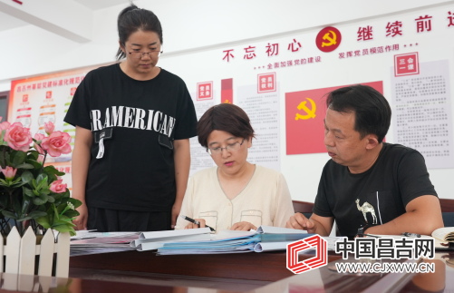 近日,阜康市准东街道党建办主任丁惠(中)在和同事一起商讨工作。李佳俊 摄