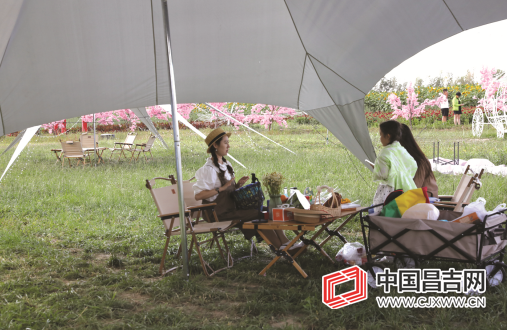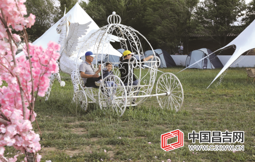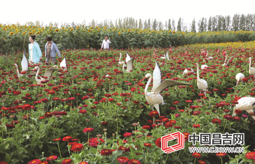 走进农庄,大片的花海十分壮观,各种用树枝编织的动物造型形态各异,甚是招人喜欢。尤其是花海里一只只迎风展翅的“仙鹤”,仿佛正踏着美妙的音乐翩翩起舞。农庄里还有白色露营帐篷、欧式铁艺花车,既诗意又浪漫,吸引了不少游客前来拍照。