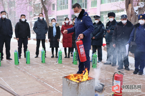 培训现场,昌吉市消防救援大队宣传员介绍了日常工作和生活中应注意的消防安全细节以及如何在火灾发生初期进行及时扑救、火灾现场如何快速自救、逃生等知识,现场演示了灭火器的正确操作步骤,并手把手指导参与培训的人员使用灭火器。