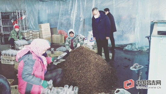 近日,吉木萨尔县农业技术推广站农技人员在南部山区乡镇查看大棚生产情况,蘑菇种植户正在将菌种装袋。 叶仙涛 摄
