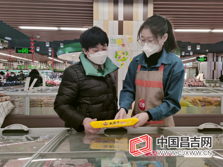 2月1日,消费者(左一)在昌吉市华洋三好超市华洋广场店购买汤圆。记者 廖冬云 摄
