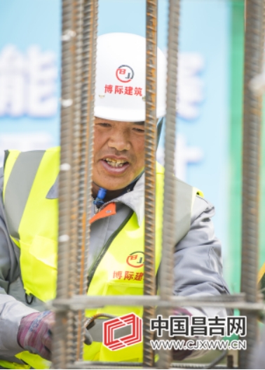钢筋工比赛现场,选手聚精会神操作。 记者 何龙 摄