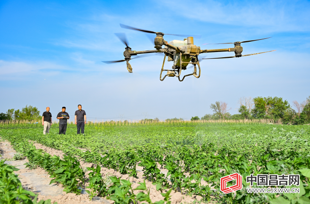 6月27日,昌吉市六工镇东五工村5G数字辣椒种植基地,技术人员操作植保无人机喷洒肥料。该基地依托5G移动网络,实时采集和传输辣椒生产过程中所需的数据,全过程监测作物生长状况和环境变化,让辣椒田管实现智能化、精准化,为辣椒丰收奠定了基础。 记者 陶维明 摄