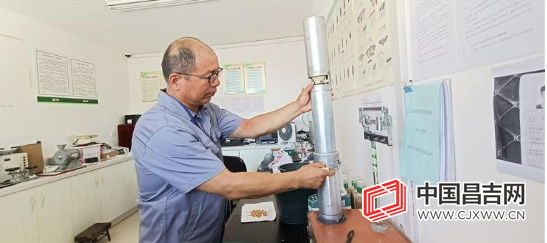 7月19日,在昌粮集团昌吉国家粮食储备库中心仓库化验室,化验员张曙光正在检测小麦容重。 记者 王薇 摄