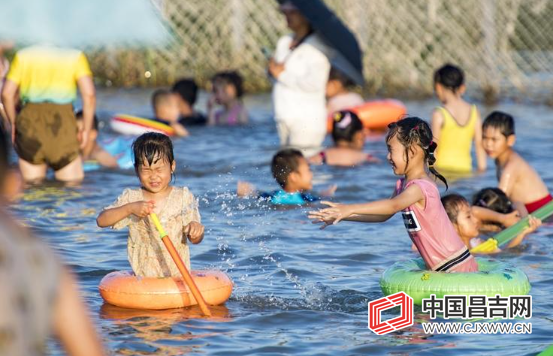 连日来,我州各地迎来高温天气,公园、水上乐园、游泳馆成为市民纳凉避暑好去处。近日,昌吉市儿童公园,孩子们在水中嬉戏玩耍。记者 何龙 摄