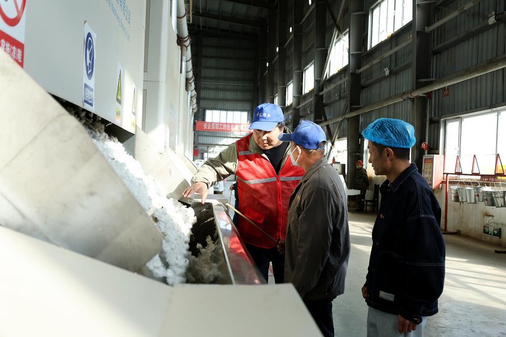 昌吉农高区农业科技创新局副局长曹恒说:“我们积极联合市场监督管理局、消防大队、第三方服务机构等相关部门,定期主动走访辖区各大轧花厂,从安全和技术层面加强对轧花厂的监督管理和服务工作,确保安全生产的同时,实现棉花朵絮归仓。”