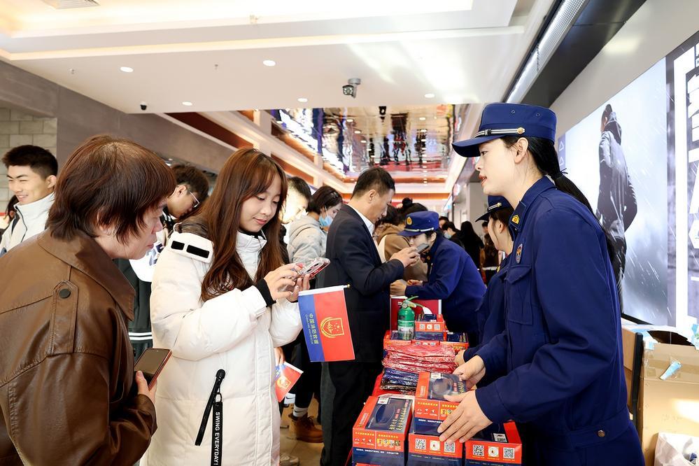 11月7日,昌吉市华洋广场,不少群众参与消防知识有奖竞答,兑换精美礼品。 记者 付小芳 摄