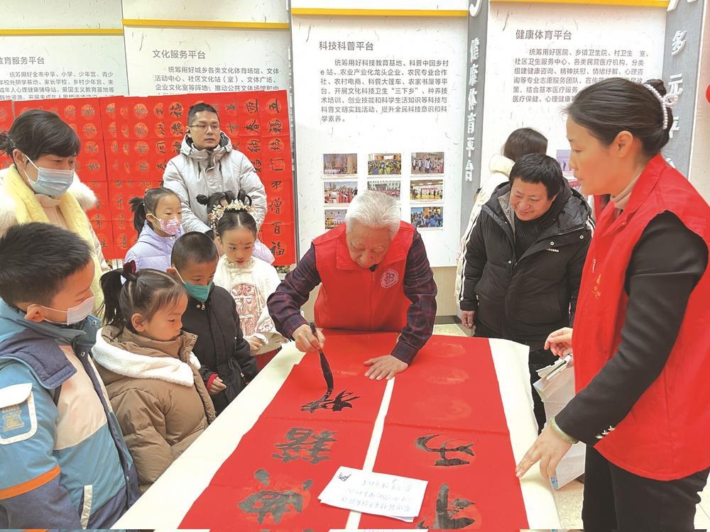 1月21日,书法家为群众写春联送祝福。        记者 王 硕摄