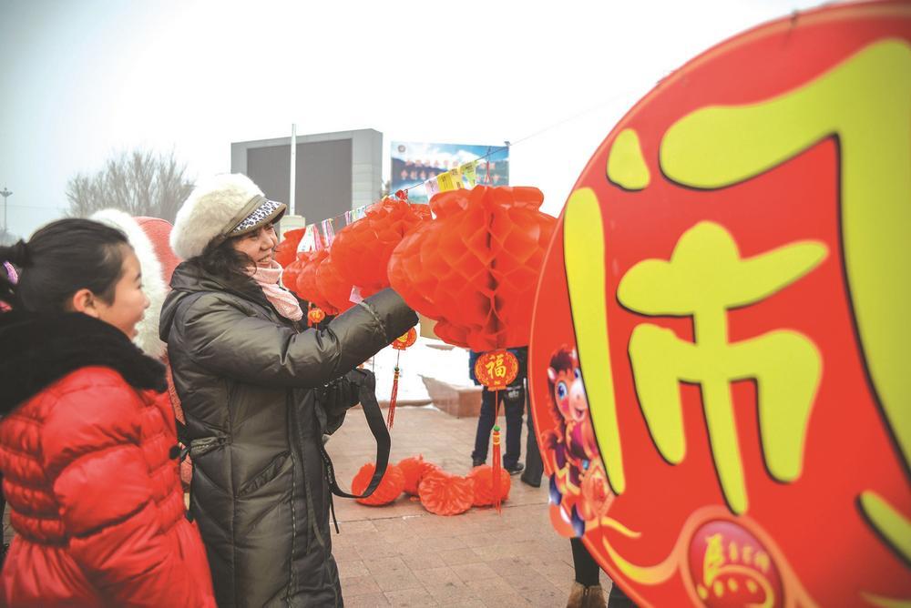 2023年元宵节,阜康市民在街头猜灯谜。□刚立强摄