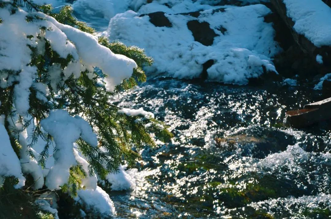 一边走一边看沿途的潜龙渊碧波荡漾、飞龙潭瀑布直流、雪岭云杉挂雪常青,每一步都走进风景里,沉浸式体验这里的静与美,时不时还能发现一颗红彤彤的小果子或灵动可爱的小松鼠。