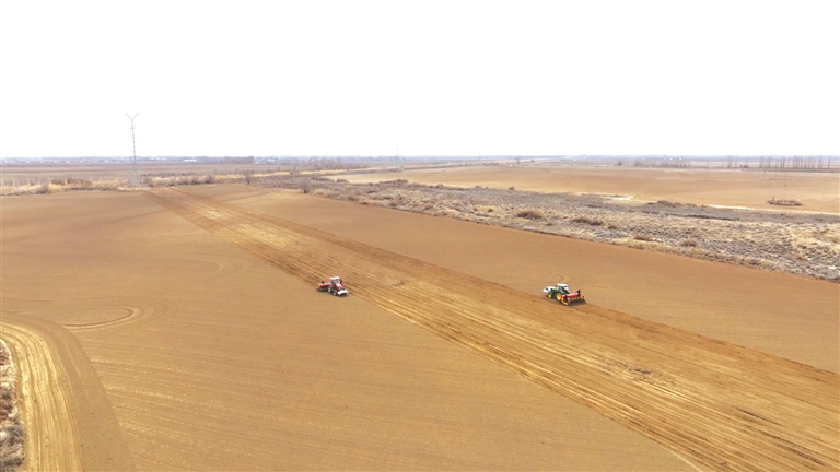 3月21日,在六户地镇杨家道村千亩春小麦种植基地,两台装有北斗导航系统的大马力拖拉机牵引着新式播种机在田间地头来回穿梭,进行春小麦播种作业。装有北斗导航系统的大马力拖拉机按照预先设定的播种线路进行精量播种,覆土、播种和铺设滴灌带同步完成,实现了全程机械化,进一步提高了播种效率和播种精度,为后期机械化田管和采收奠定了坚实的基础。杨家道村村民侯文双说:“300亩地大半天时间就播完了,运用北斗导航新技术的拖拉机播得很直,效率也高,更节省种子,方便我们后期田间管理。”