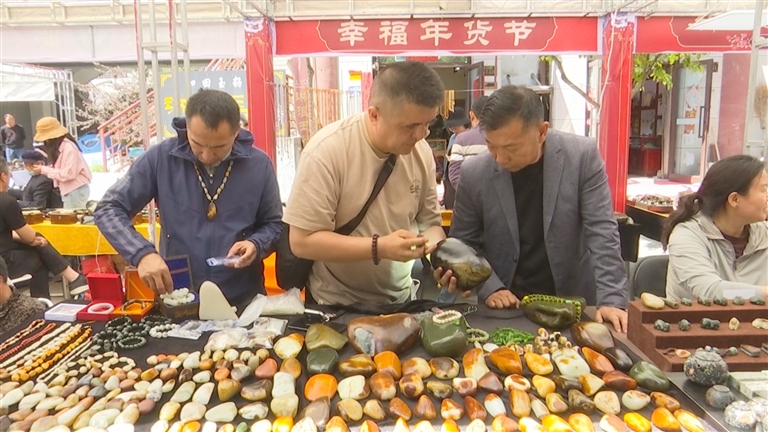 来自乌鲁木齐的商户胡崇涛带来了300多件金丝玉、泥石、奇石等,一大早他就收获满满。胡崇涛说:“这里的环境优美,人气很旺,可以买到全国各地的碧玉奇石。”