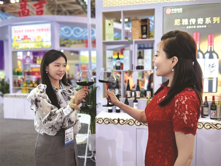 参会嘉宾品尝昌吉州产的葡萄美酒。