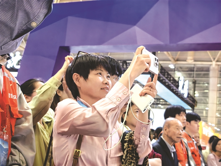 参会嘉宾用手机定格精彩瞬间。