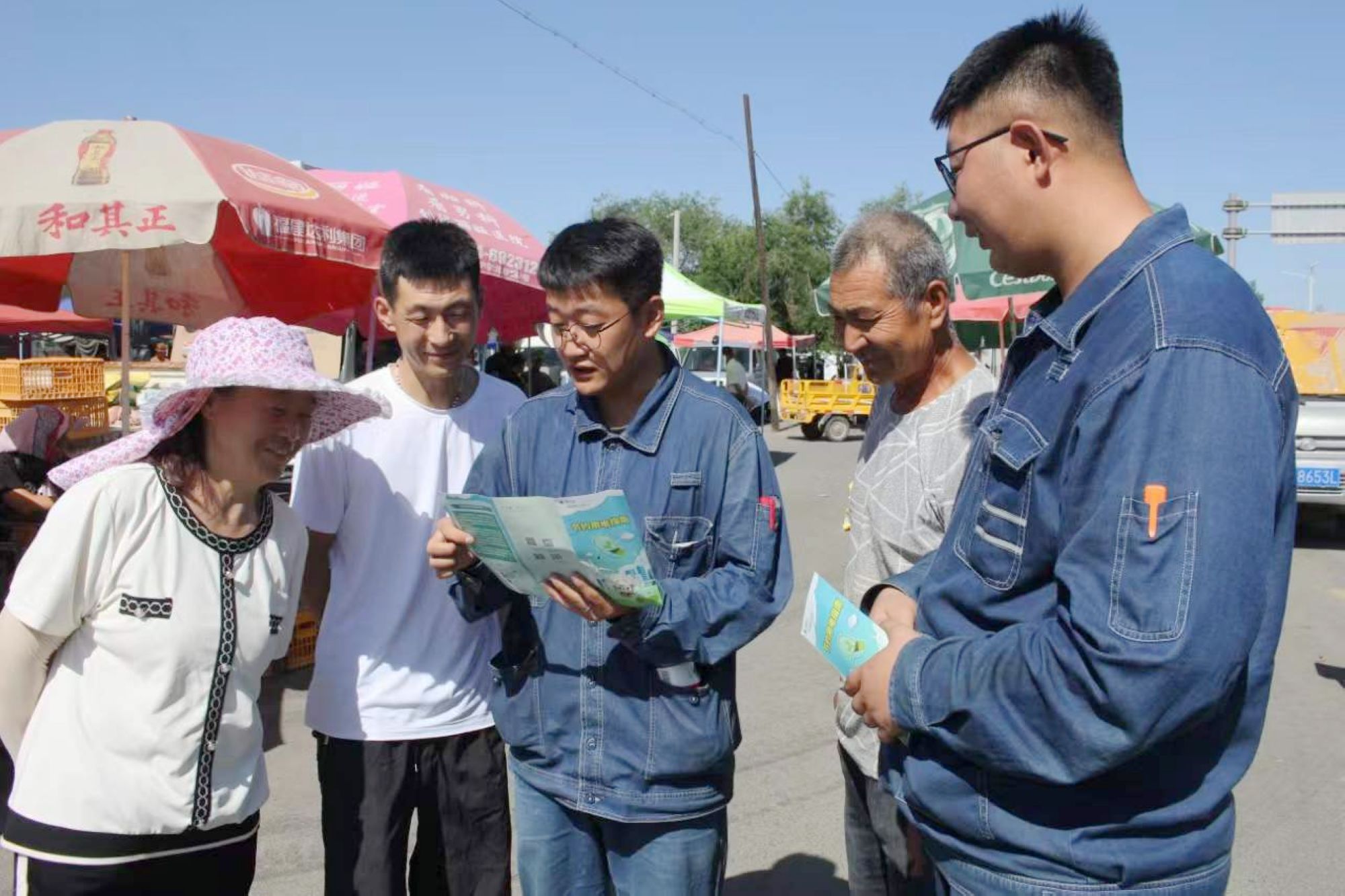 6月15日,吉木萨尔县供电公司二工供电所供电人员们,利用赶集日向各族群众、用户代表宣传节约用电的小常识。张德峰摄