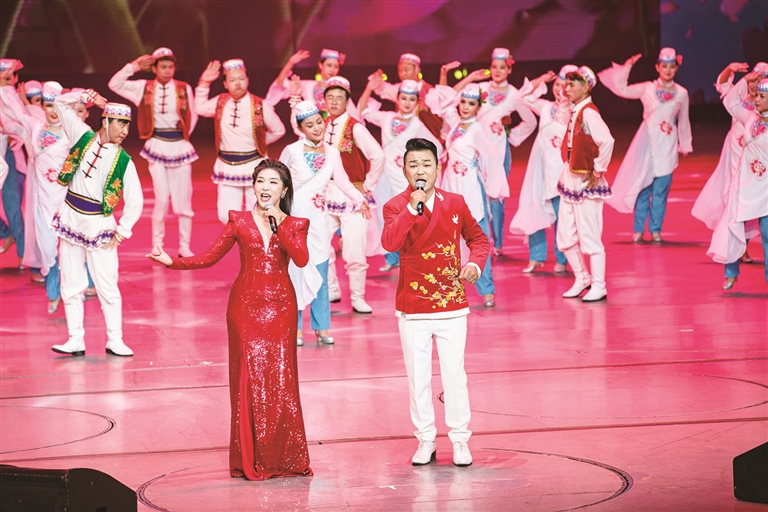 7月16日,新疆大剧院,花儿歌唱家郭彦华、马全在演唱《花儿与少年》。 记者 巨海成摄