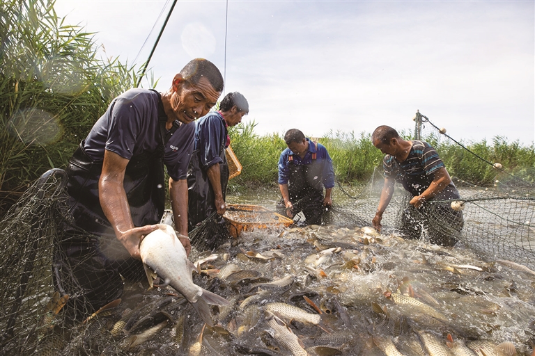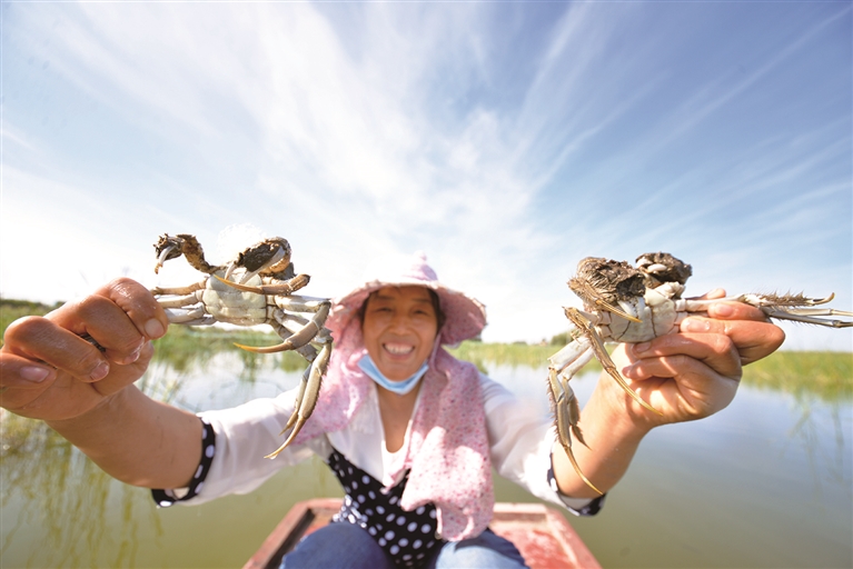 玛纳斯县广东地乡新湖坪村的螃蟹喜获丰收。 王昊波摄