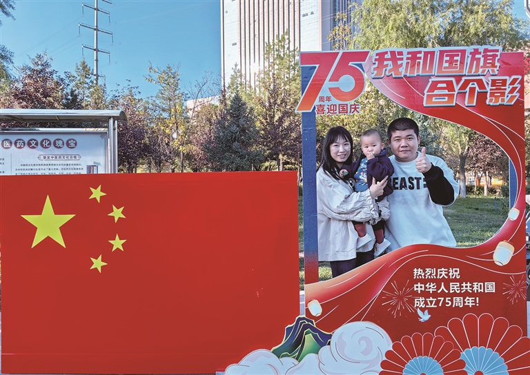 9月29日,昌吉市举办庆祝中华人民共和国成立75周年爱国主义教育文明实践活动,市民参与“我和国旗合个影”欢度国庆节。记者 付小芳摄