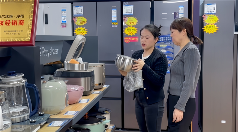 红太阳家电中心门店经理杨秀琴说:“现在顾客对小家电的需求非常高,政府新出台的家装厨卫换新补贴政策,刚好满足了消费者的需求,这段时间,店里顾客明显增多。这项政策不仅为群众带来了实惠,也给我们商家带来了实实在在的红利。”