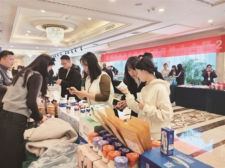当天,在会场外的产品特展区,全州25家企业带来了60余种名优特产品,供与会人员观赏品鉴,深入了解昌吉特色产品的优势与价值。