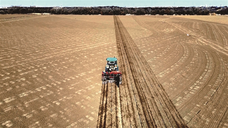 3月16日,玛纳斯县北五岔镇田家井村春小麦播种现场。 赵善宾摄