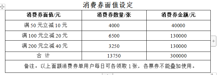 消费券金额合计30万元。