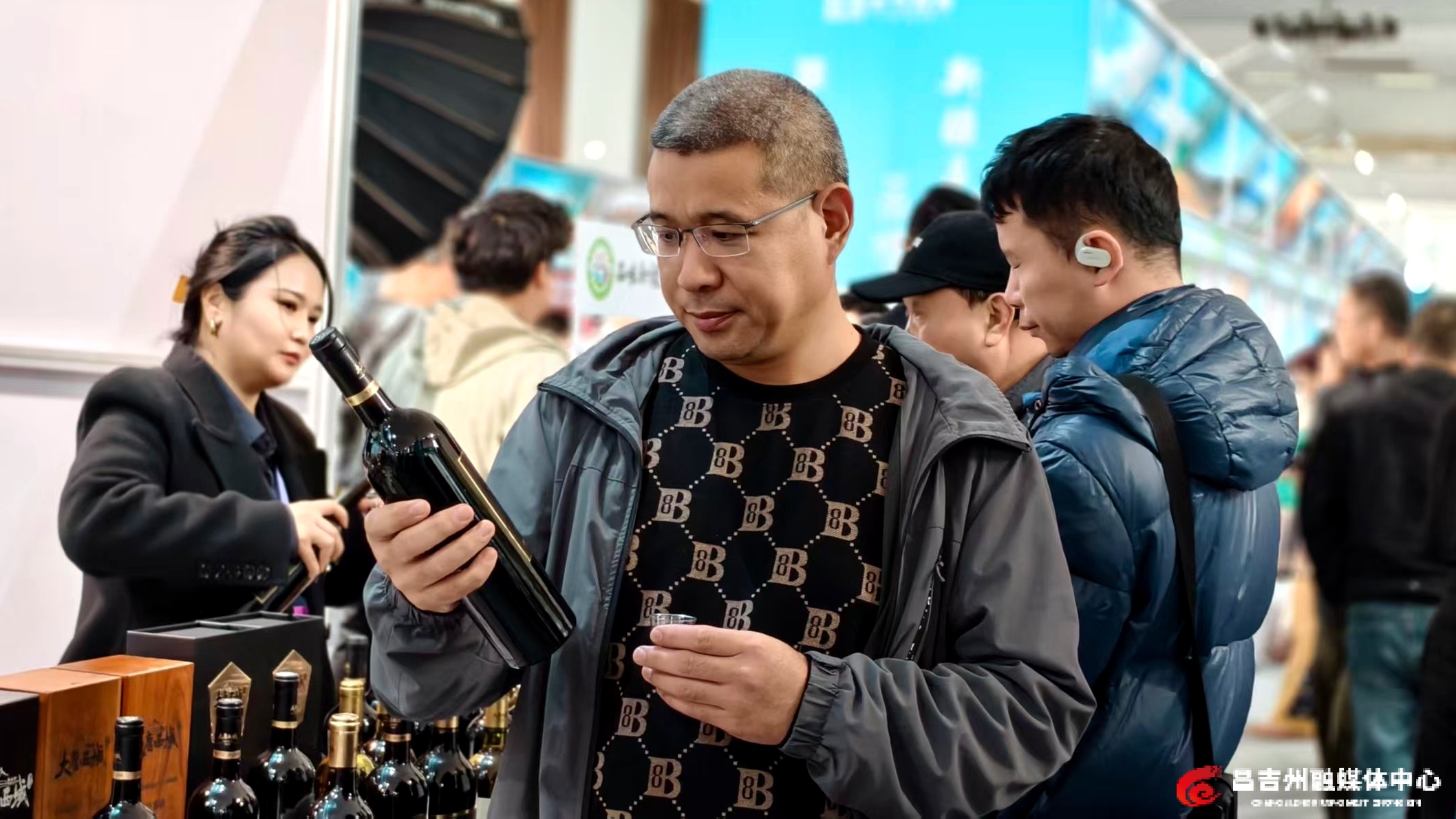 新疆大唐西域酒庄股份有限公司展台上,干红、干白等7款葡萄酒供消费者免费品鉴。北京市民刘洁端着试饮杯品尝后说:“这酒真好!入口柔顺清爽、果香浓郁,满口都是葡萄的甜香。我家先生爱喝红酒,我先带两瓶给他尝尝。”