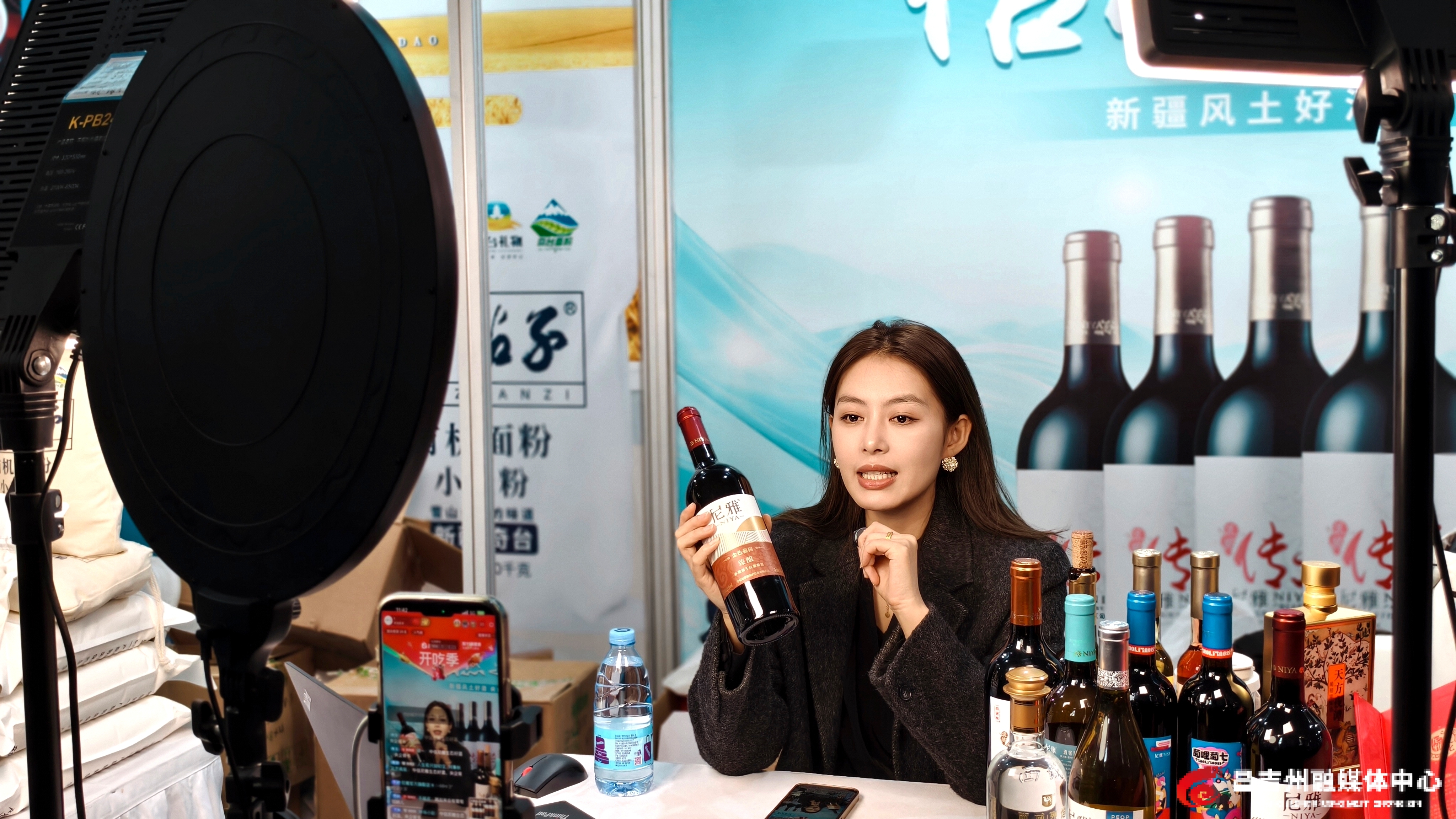 昌吉州展区直播区里,贺娇龙的逛展式直播生动有趣,西域春、马三三酸奶的现场直播更是热闹;中信尼雅葡萄酒股份有限公司主播张宇静架着手机直播,她热情地向网友介绍:“信自然,造不凡!新疆风土好酒,央企严选品质,欢迎大家领取优惠券。”