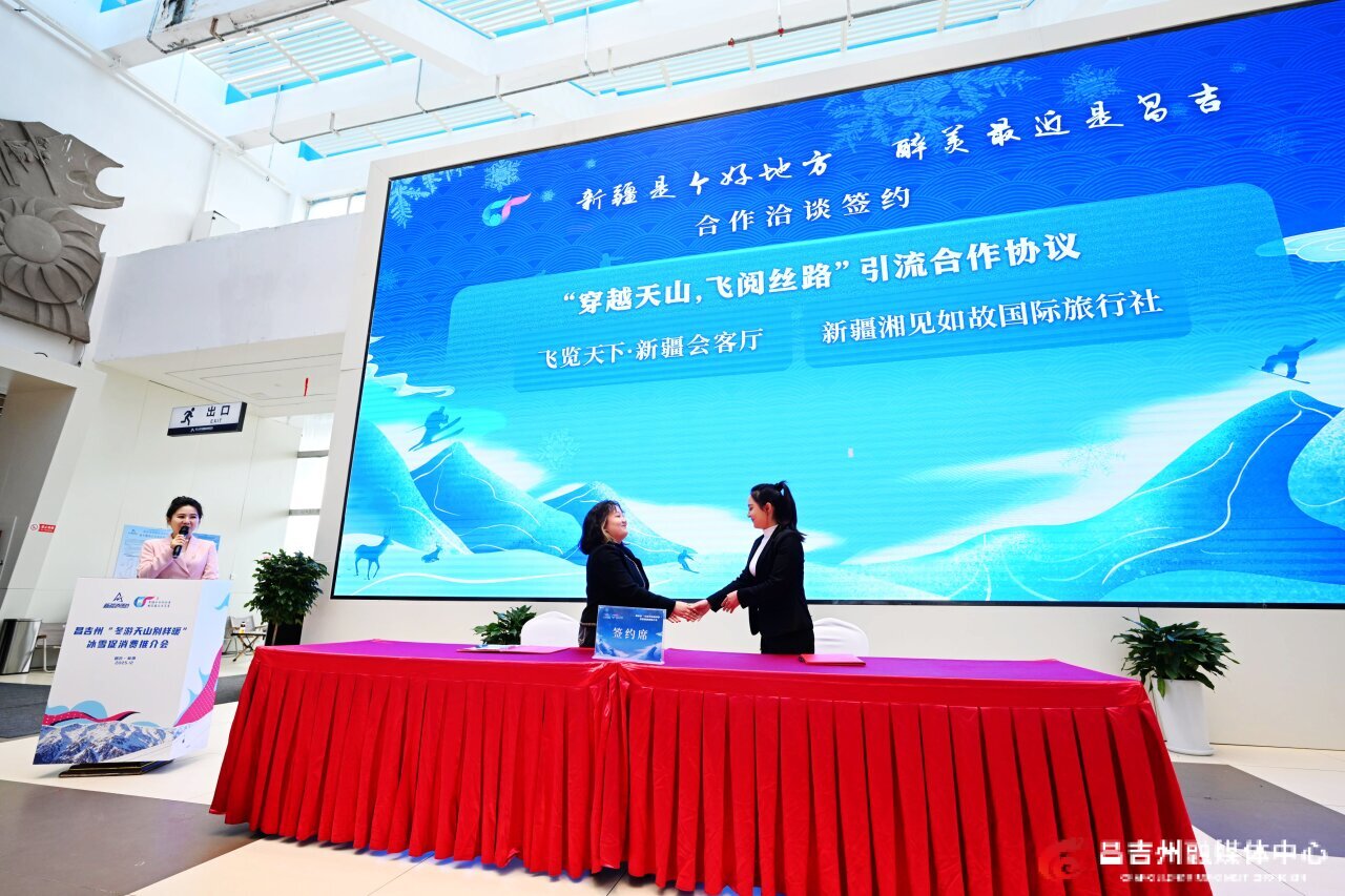 12月6日,昌吉州“冬游天山别样暖”冰雪促消费推介会在阜康市天山天池国际滑雪场举行。