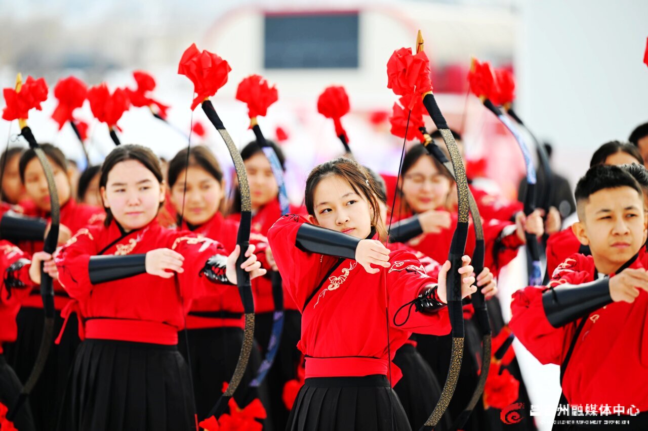 12月6日,昌吉州“冬游天山别样暖”冰雪嘉年华暨阜康市冰雪风情季、天山天池国际滑雪场开板仪式现场的冰雪射箭表演。