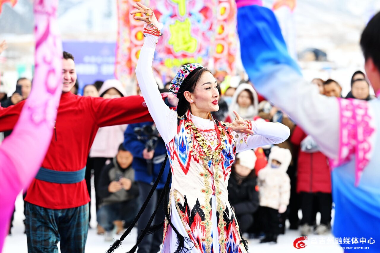 12月6日,昌吉州“冬游天山别样暖”冰雪嘉年华暨阜康市冰雪风情季、天山天池国际滑雪场开板仪式现场,演员在表演开场舞蹈。