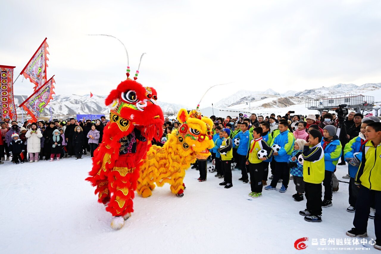 12月6日,昌吉州“冬游天山别样暖”冰雪嘉年华暨阜康市冰雪风情季、天山天池国际滑雪场开板仪式现场,舞狮和现场观众互动。