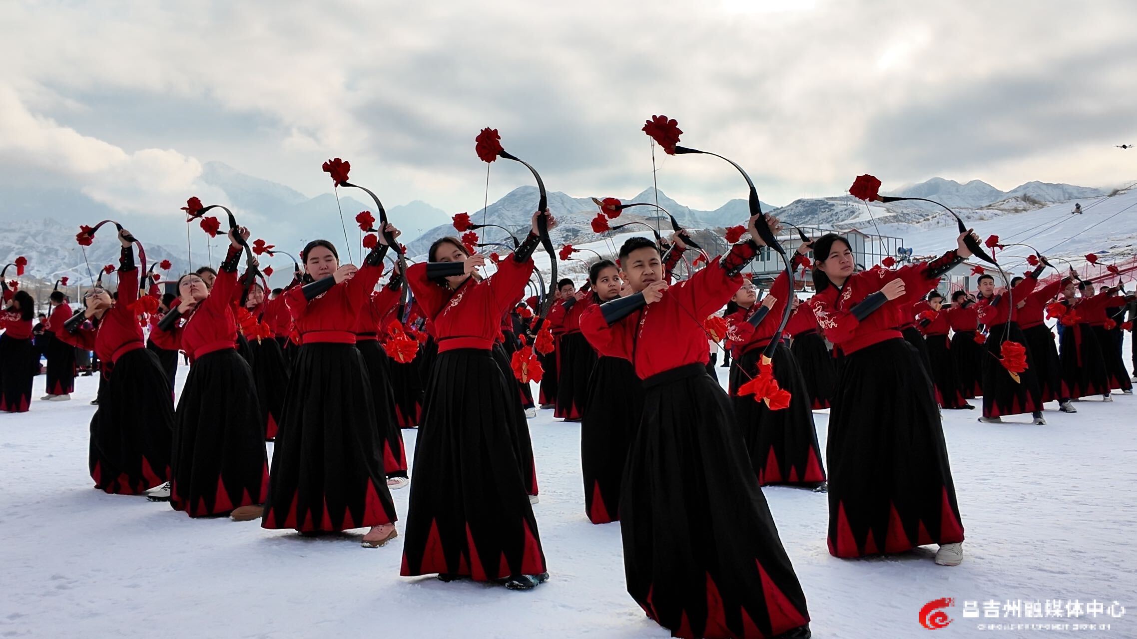 在冰雪体验活动中,国旗滑雪方队、汉服国潮滑雪方队、“七剑下天山”主题方队等依次从雪道翩然而下,为观众献上了一场别开生面的滑雪秀。雪地上,百人颠球、冰雪射箭表演精彩纷呈。此外,活动当天还设立了葫芦、毛毡等非遗项目和“昌吉好礼”文创旅游商品集中展示区,雪地火锅免费品尝区热气腾腾,让游客全方位感受昌吉冰雪旅游的独特魅力。