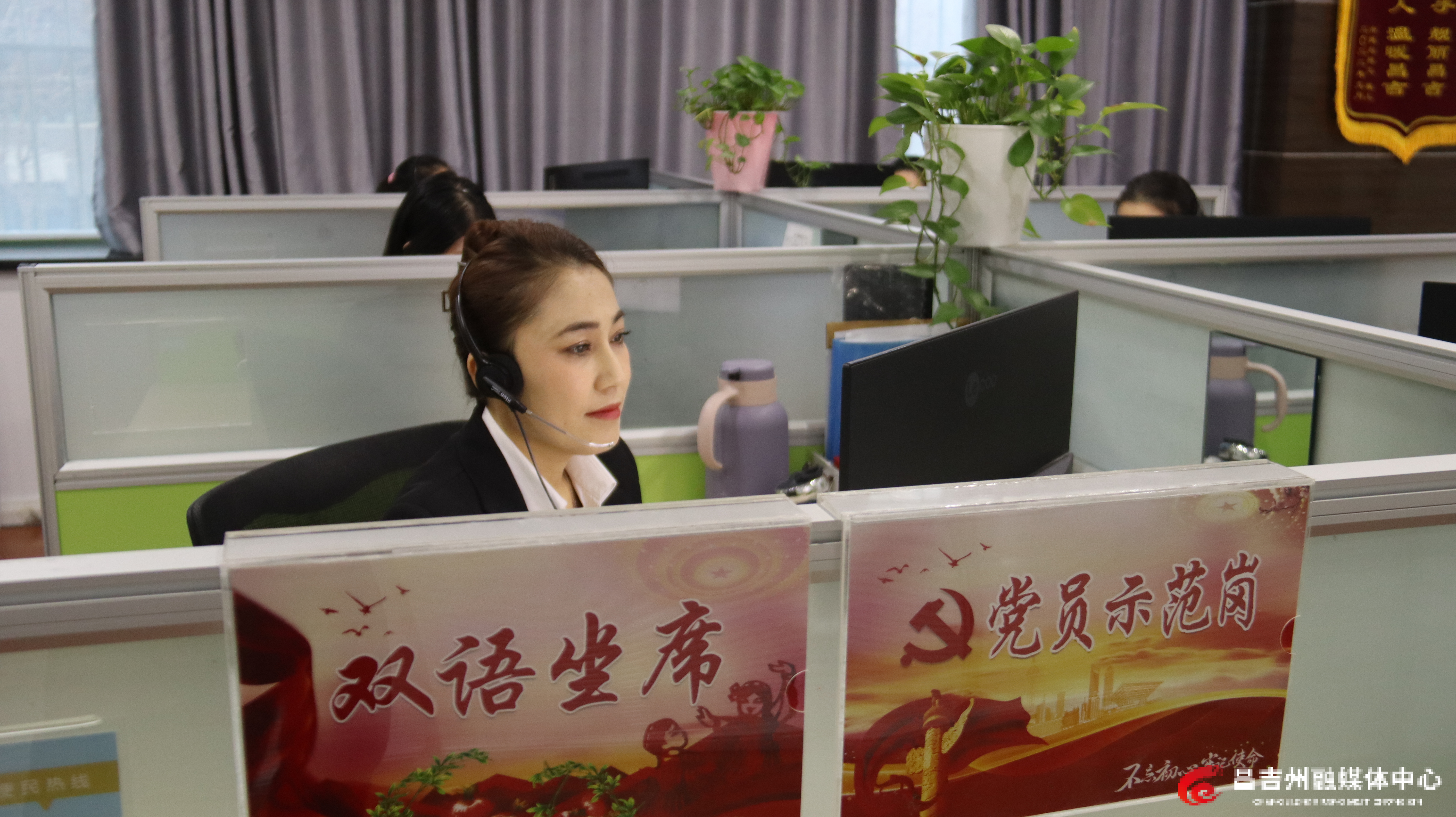 12月8日,昌吉州12345政务服务便民热线受理中心话务员正在接听群众预约热线电话。记者杨鹤 摄