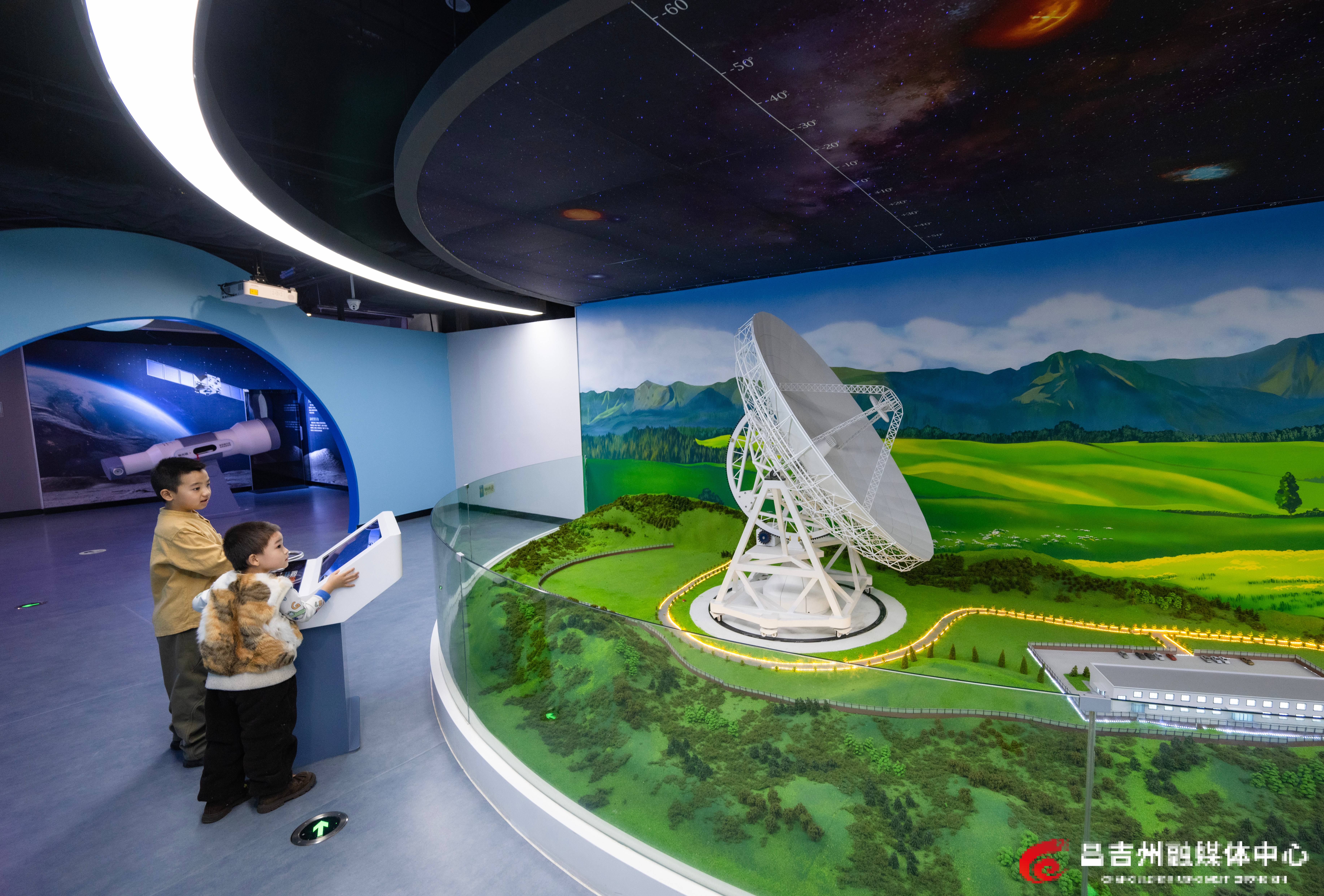 2月2日,昌吉科技馆,小朋友参观射电望远镜模型。