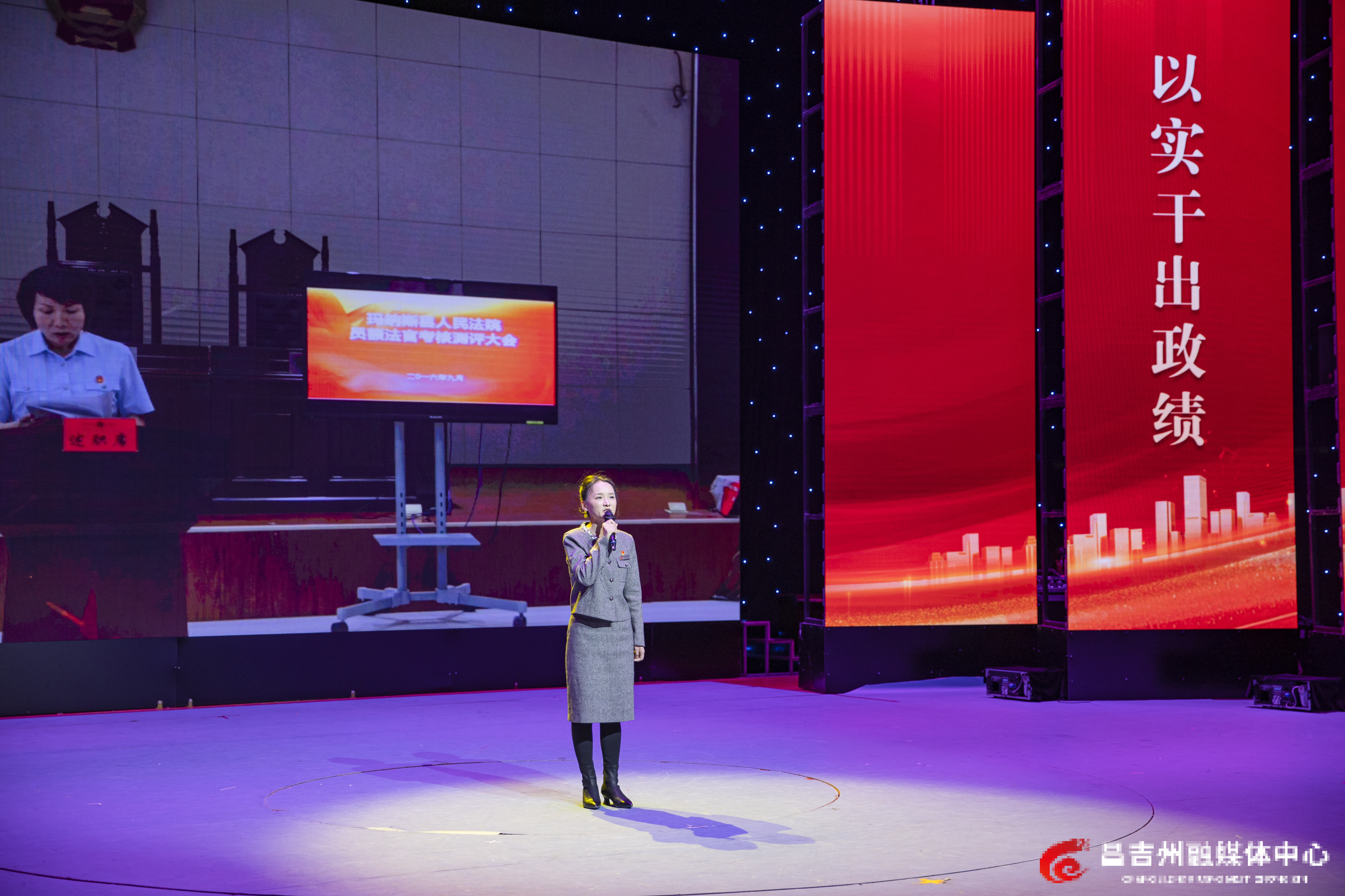 3月27日,在昌吉州融媒体中心800平方米演播厅,昌吉州“声动庭州”宣讲团成员武艳艳宣讲《我的法官妈妈》。
