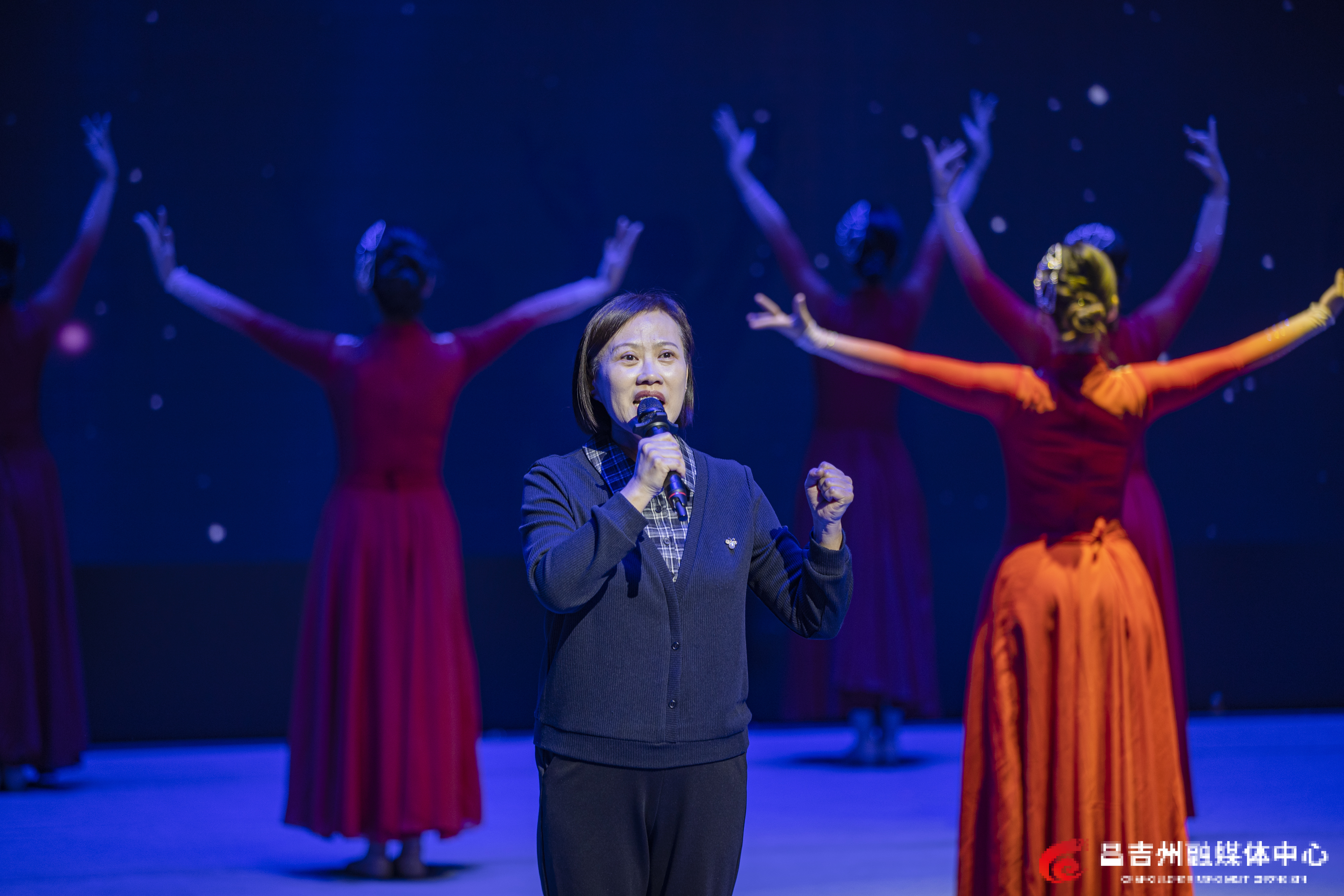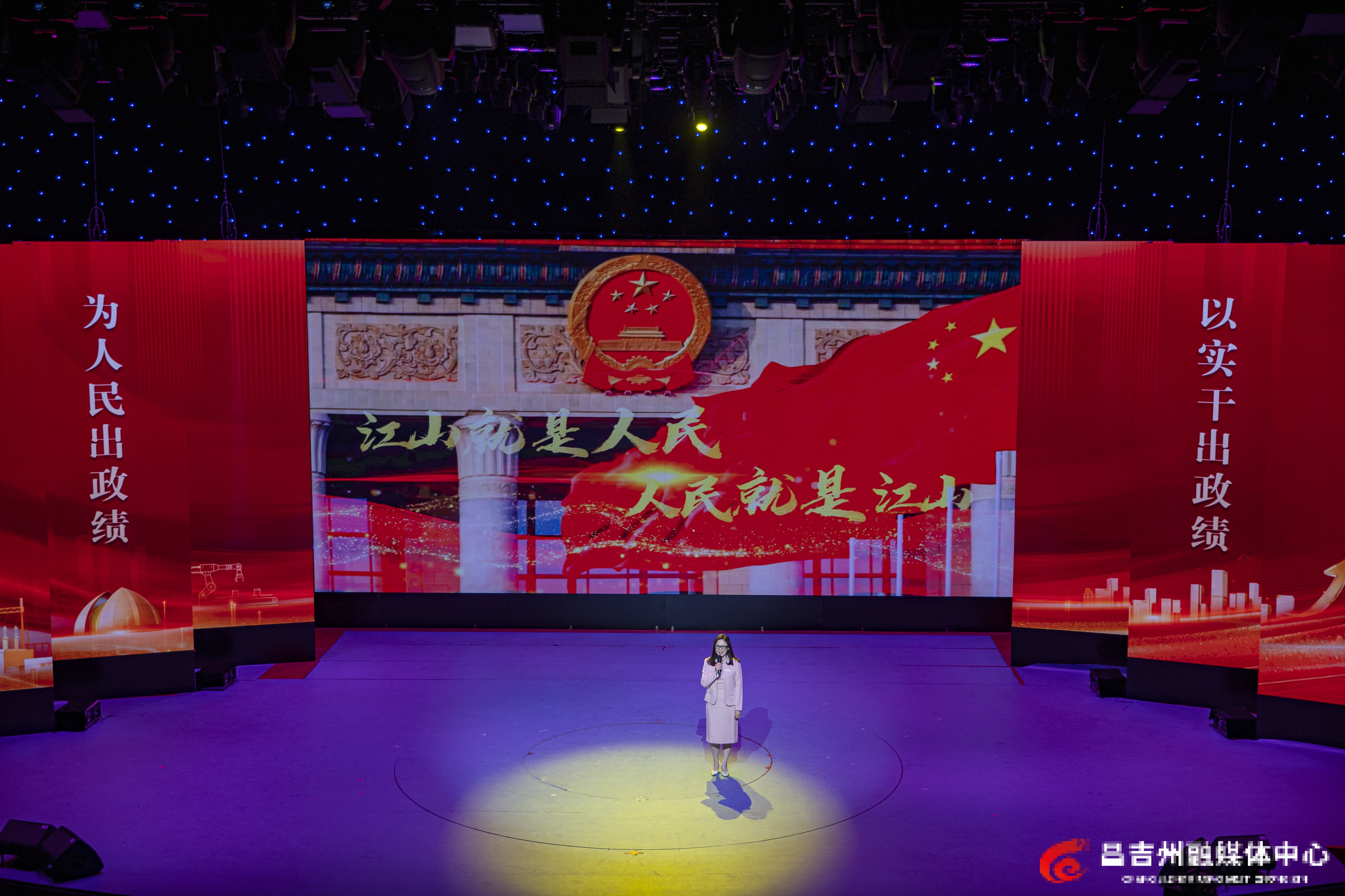 3月27日,在昌吉州融媒体中心800平方米演播厅,举行“学习典型 致敬模范”宣讲报告会现场。