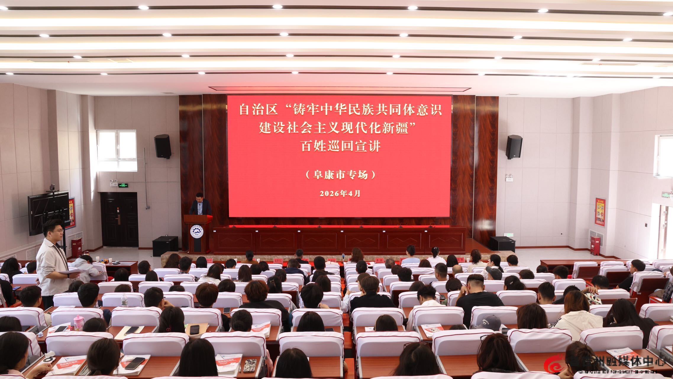 自治区“铸牢中华民族共同体意识 建设社会主义现代化新疆”百姓巡回宣讲团走进阜康市,在阜康职业技术学院开展宣讲。通讯员杨涛摄
